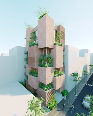 Là dự án nhà ở kết hợp văn phòng tại Hà Nội, 5 tầng dưới là văn phòng và 3 tầng trên là nhà ở với diện tích ở khoảng 300m2. Công trình hướng đến giải pháp sống xanh và bền vững. Thiết kế lấy cảm hứng từ kiến trúc truyền thống, tích hợp khoảng xanh là những khu vườn được xếp chồng cùng thông gió tự nhiên và năng lượng tái tạo. Mặt bằng được thiết kế tối ưu với vi khí hậu địa phương. Công trình sử dụng vật liệu bản địa như gốm, giấy dó kết hợp công nghệ mới, vừa tạo bản sắc địa phương, vừa thúc đẩy phát triển cộng đồng làng nghề. Cùng với đó chúng tôi lựa chọn cửa nhôm kính Tostem bởi tính tối giản, hiệu năng cách nhiệt, chống ồn, chống bụi vượt trội, góp phần hoàn thiện ngôn ngữ kiến trúc xanh và mang tính kết nối của chúng tôi.
