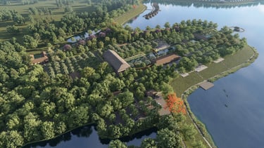 Khu đất rộng 4,2 ha nằm ven hồ Lán Chẽ (24 ha) tại Chí Linh, Hải Dương, hiện trạng là vườn cây ăn quả, vải cổ và hàng keo ven hồ. Xung quanh là đất rừng đã bị khai thác, chuyển sang trồng cây nông nghiệp. Dự án được định hướng khôi phục hệ sinh thái rừng bản địa, tạo nên khu nghỉ dưỡng cao cấp gắn liền với thiên nhiên nguyên bản. Thay vì sử dụng vật liệu đắt tiền, công trình đề cao giá trị bản địa và cảnh quan tự nhiên, mang đến trải nghiệm sang trọng mới – nơi con người sống hài hòa và sâu sắc với môi trường tự nhiên.