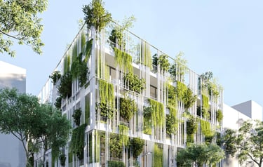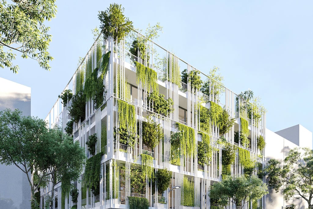 Do đó để loại bỏ tính chất nhà ở hiện hữu và tăng mật độ cây xanh cho môi trường giáo dục, chúng tôi chọn giải pháp bọc một lớp vỏ xanh quanh công trình. Các tấm thép được bố trí ngẫu nhiên vừa là lan can đồng thời cũng là giàn để trồng cây. Phương án trên vừa giúp tiết kiệm chi phí cải tạo vừa tăng mật độ cây xanh đồng thời cũng giúp hạn chế tiếng ồn và khói bụi từ trục đường lớn ảnh hưởng đến môi trường bên trong.